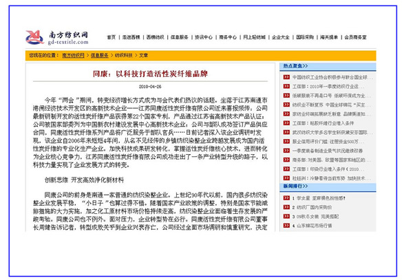 南方紡織網(wǎng)、白馬服裝網(wǎng)——同康:以科技打造活性碳纖維品牌